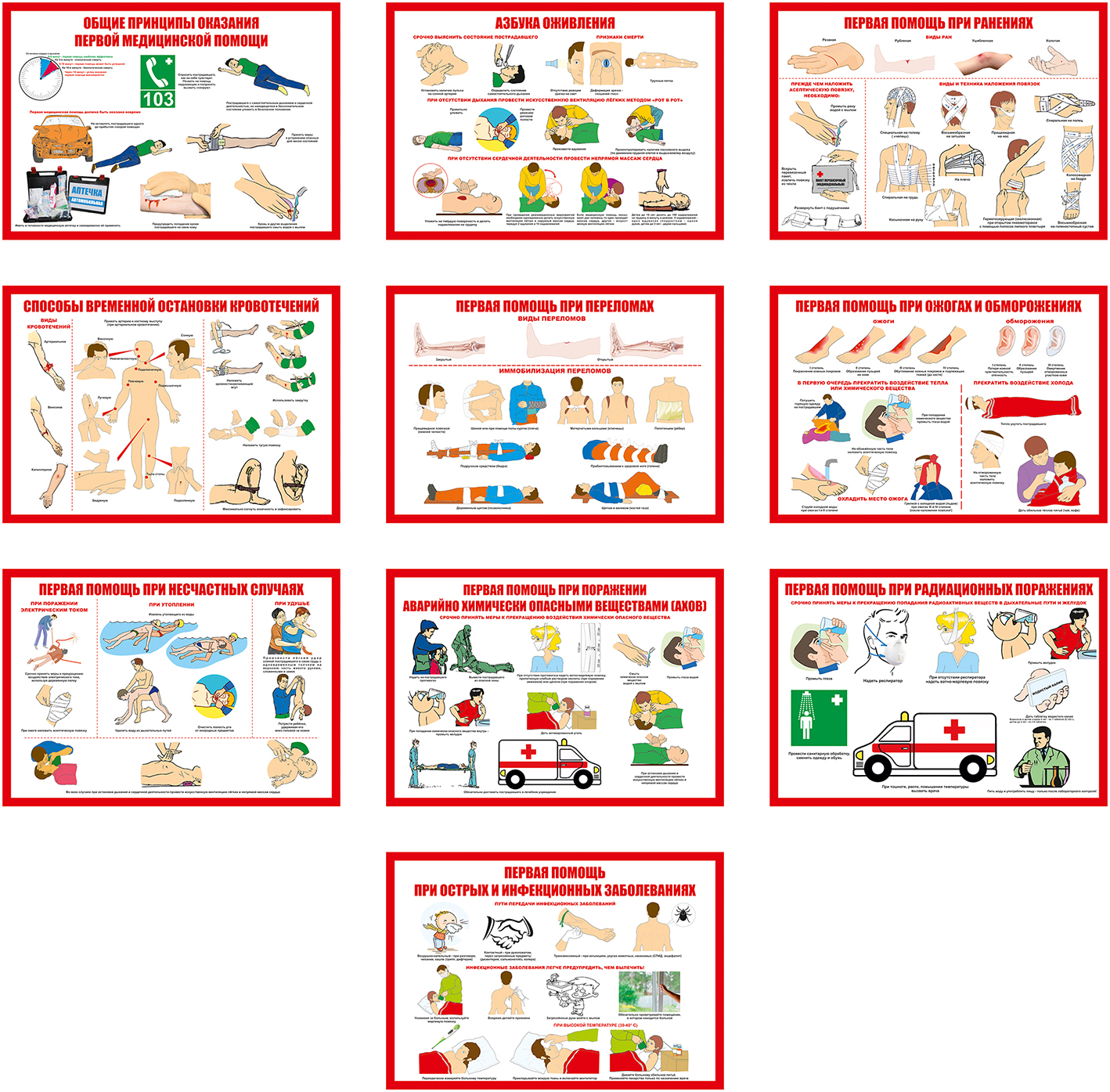 Комплект плакатов "Оказание первой медицинской помощи" 10 листов