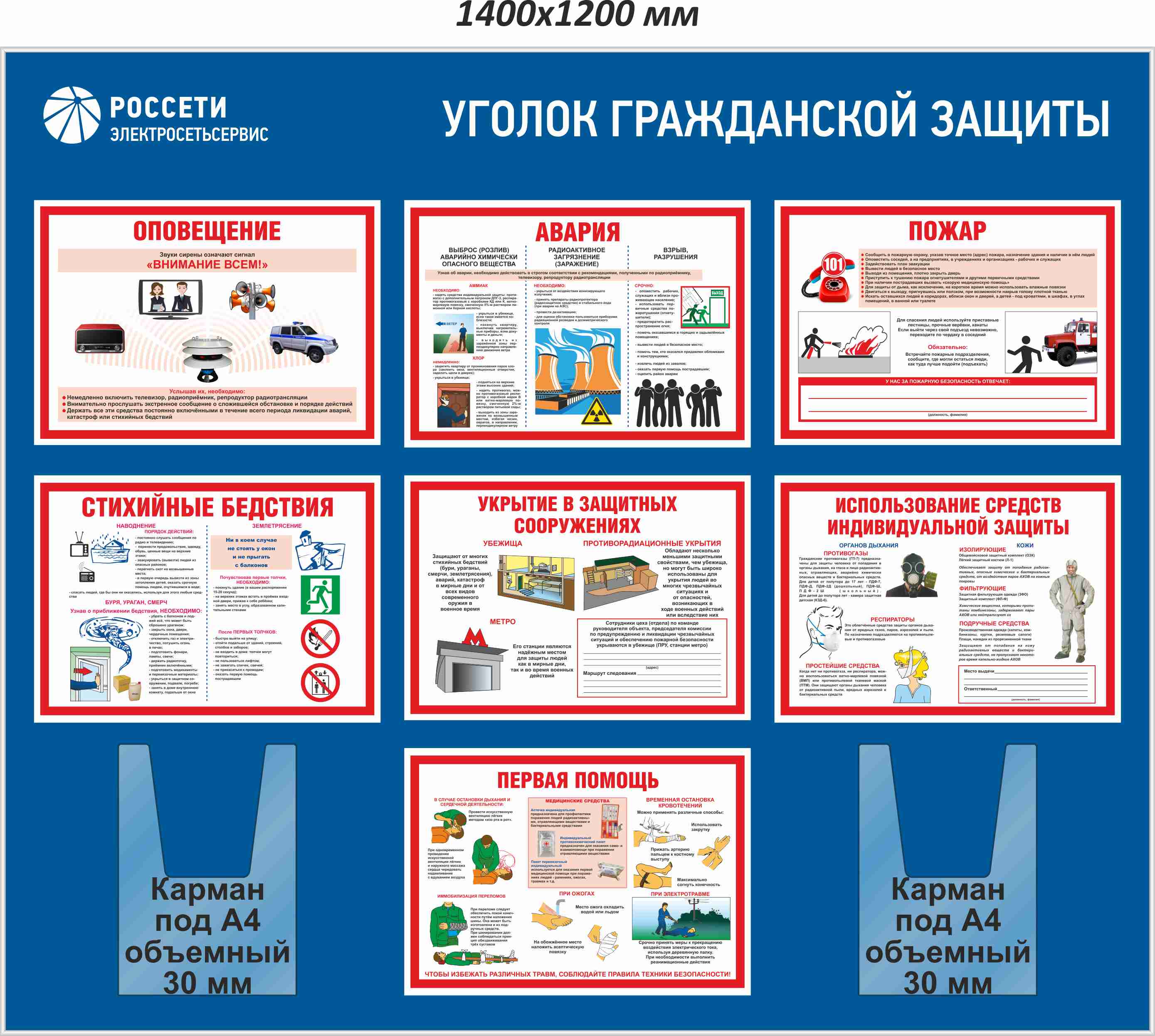 Уголок гражданской защиты_Россети электросетьсервис (Плакат ГАСЗНАК А3-7шт,карман А4 верт.об.2шт)