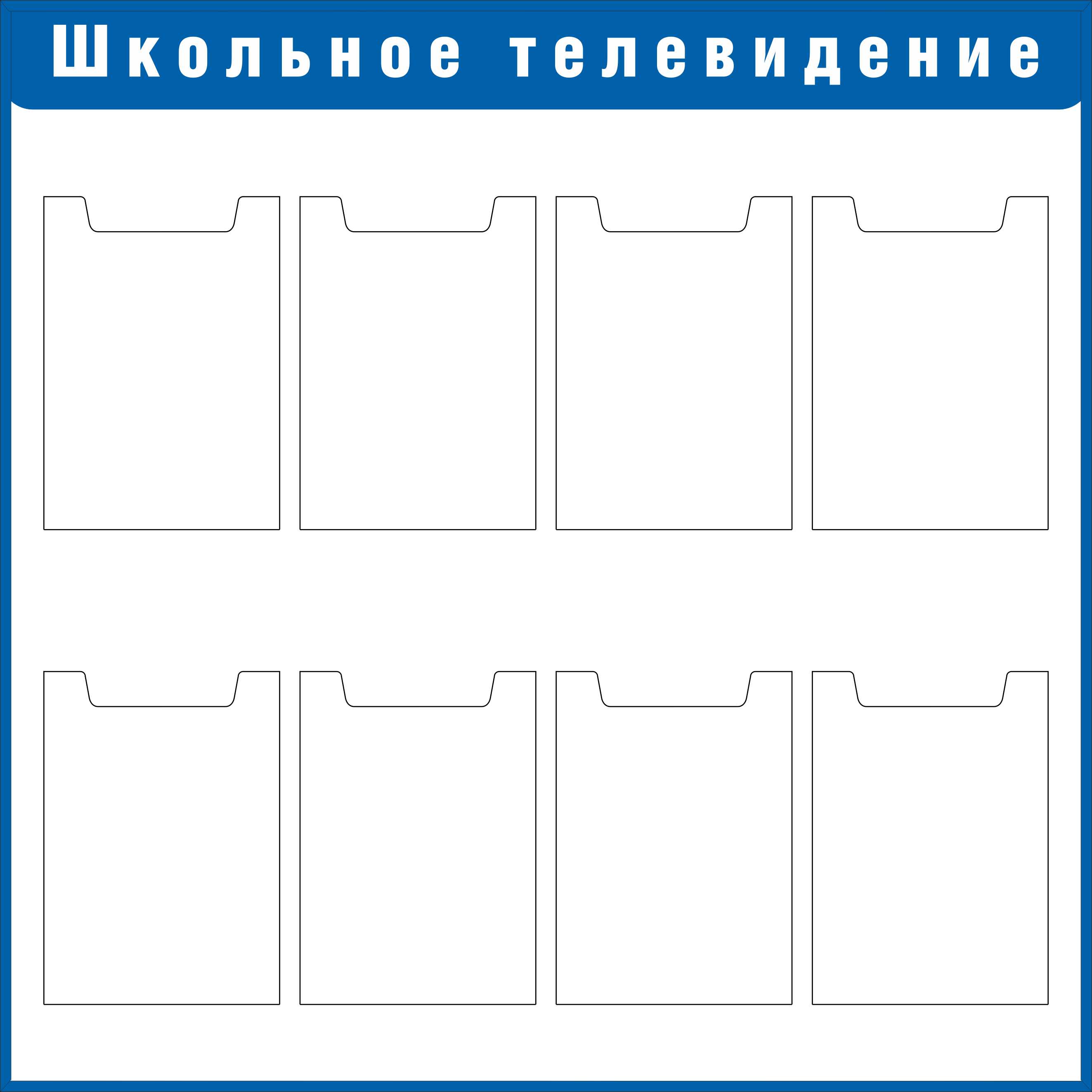 Стенд Информация Наполнение 12 карманов А4 (плоские) В индивидуальной упаковке. В индивидуальной упаковке, Логотип (1400х800; Пластик ПВХ 4 мм, пластиковый профиль; Пластиковый синий)