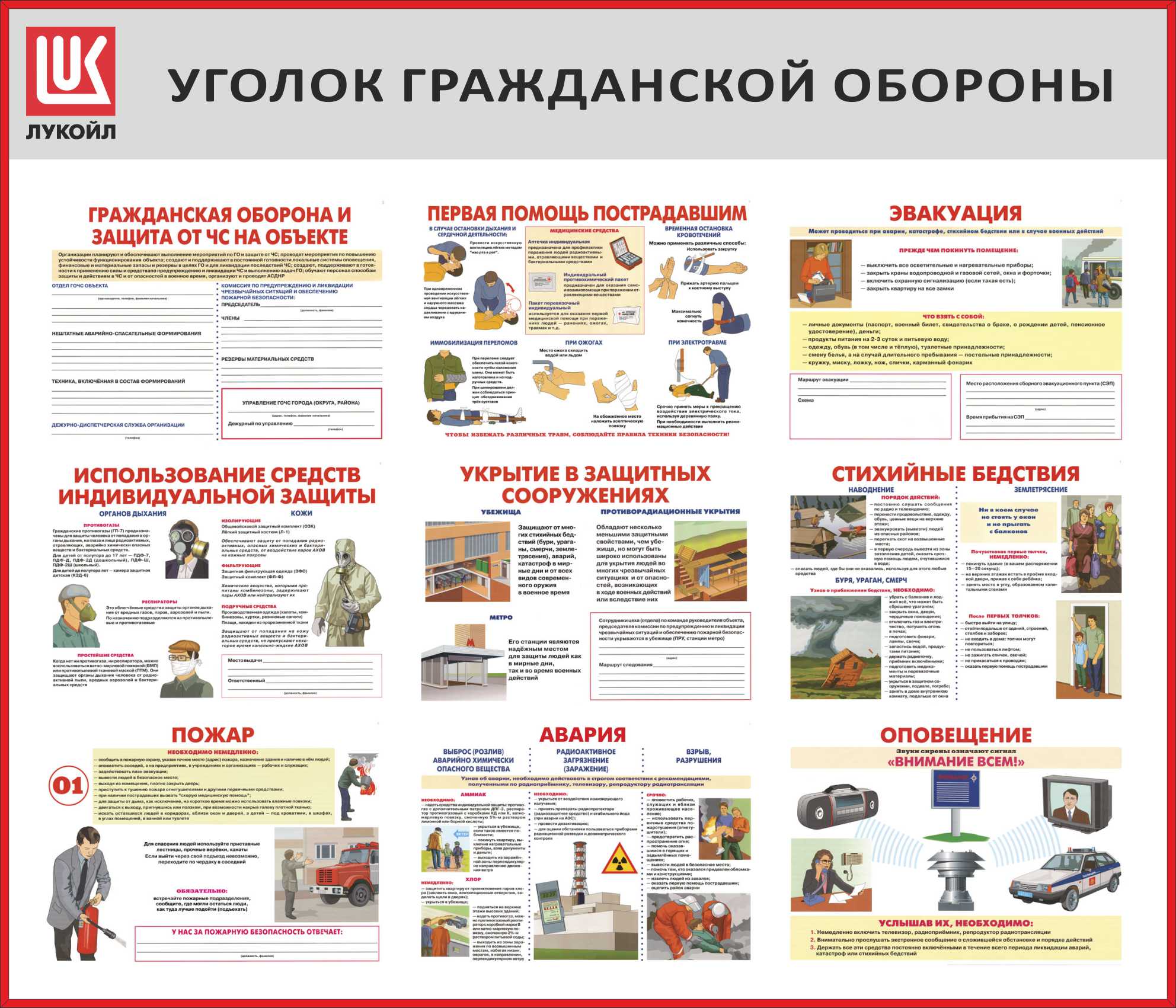 Стенд Уголок гражданской обороны, 9 плакатов А3, Логотип (1400х1200; Пластик ПВХ 4 мм, пластиковый профиль; Пластиковый красный)
