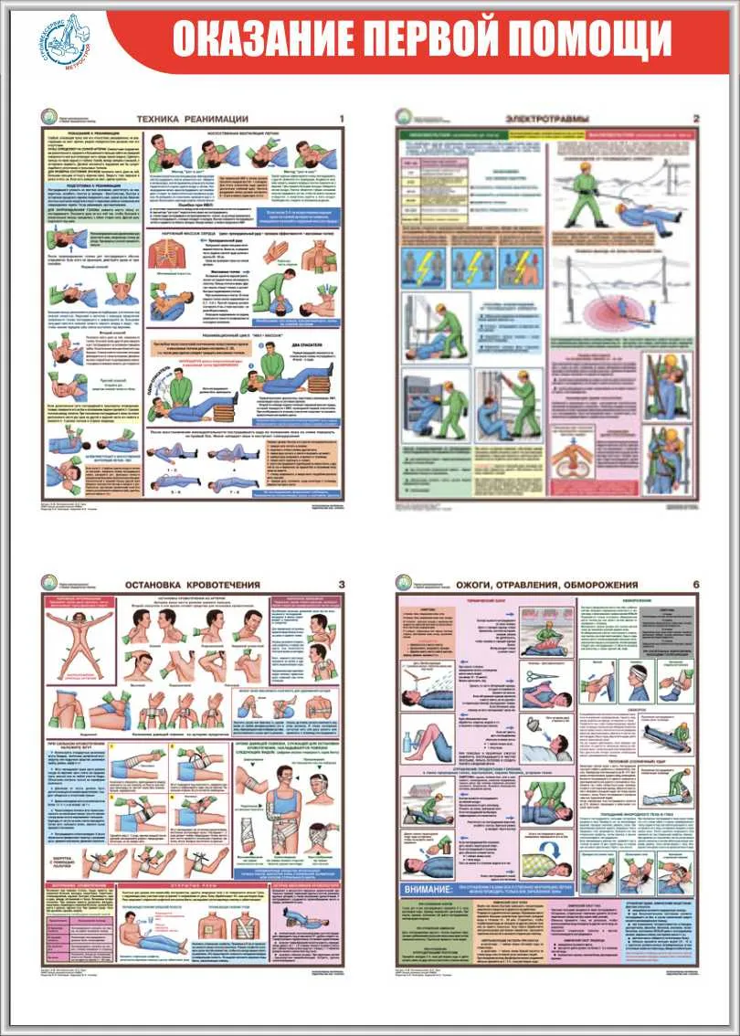 Стенд Оказание первой помощи (Пластик ПВХ 4 мм, алюминиевый профиль, плакат Соуэло А4 -Техника реанимации», «Электротравмы», «Остановка кровотечения», «Ожоги, отравления, обморожения» (500х700; Пластик ПВХ 4 мм, алюминиевый профиль; )
