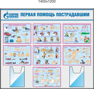 Стенд Первая помощь, 7 плакатов военные знания А3, 2 кармана А4. (1400х1200; Пластик ПВХ 4 мм; Алюминиевый профиль)
