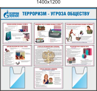 Стенд Терроризм - угроза обществу, 7 плакатов военные знания А3, 2 кармана А4. (1400х1200; Пластик ПВХ 4 мм; Алюминиевый профиль)