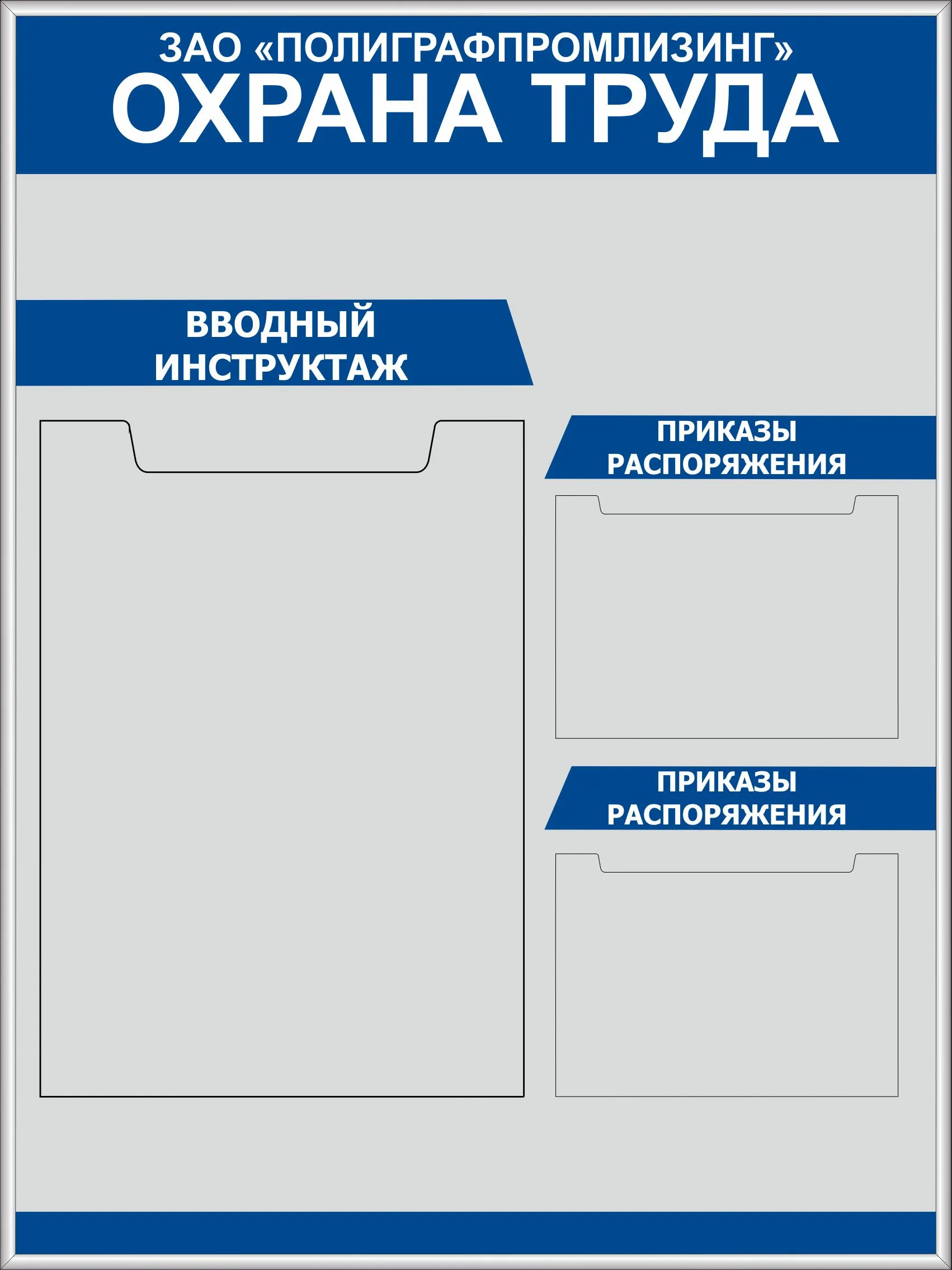 Стенд Охрана труда Наполнение: 1 карман А2, 2 кармана А5 (все плоские) (600х800; Пластик ПВХ 4 мм, пластиковый профиль; )
