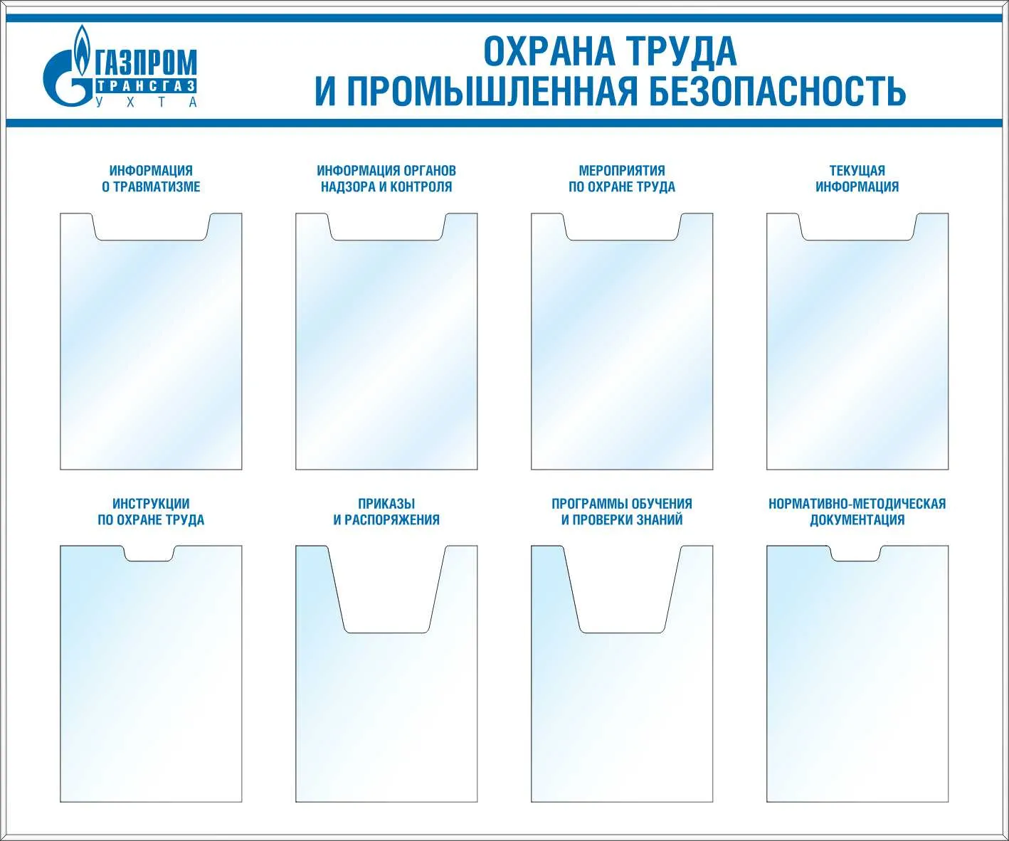 Стенд Уголки по охране труда, 8 вертикальных карманов - А4 ST119 (Пластик ПВХ 4 мм; 1200х1000)