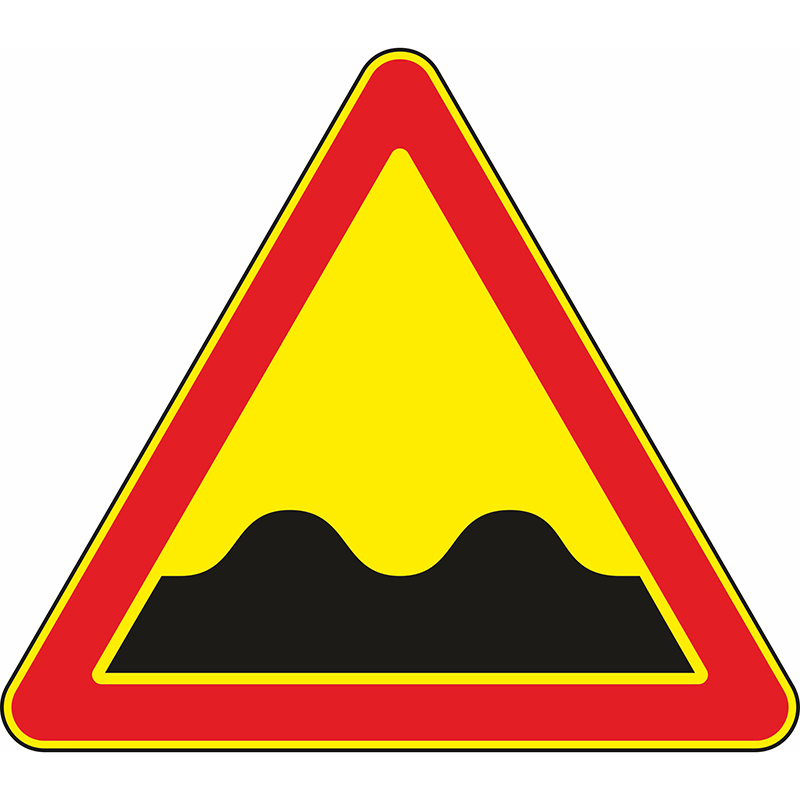 «Неровная дорога» сообщает водителю о том, что впереди — участок с дорожной поверхностью, на которой возможны волнистость, ямы и прочие неровности. Знак устанавливают в основном на аварийных участках дорог или тех, где ведутся ремонтно-восстановительные работы. Увидев этот знак, водитель должен сбавить скорость и приготовиться к выезду на участок с неровным покрытием. Если колесо попадет в яму на высокой скорости, это может стать причиной повреждения не только резины или диска, но и подвески машины.