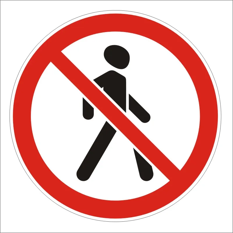 Значение знака «Движение пешеходов запрещено» — запрет дальнейшего движения по обозначенному участку для пешеходов. Его устанавливают на участках, которые предполагают наличие какой-либо опасности для пешеходов: в их числе скоростные дороги, места проведения дорожных работ и другие. Кроме того, знак иногда размещают на регулируемых перекрестках, если необходимо ограничить пешеходное движение в том или ином направлении. Зона действия включает лишь ту сторону проезжей части, на которой стоит знак.