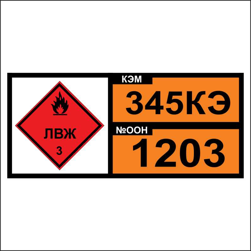Знак опасности. Табличка номер опасности и номер ООН (OON345КЭ-1203) (Бензин)